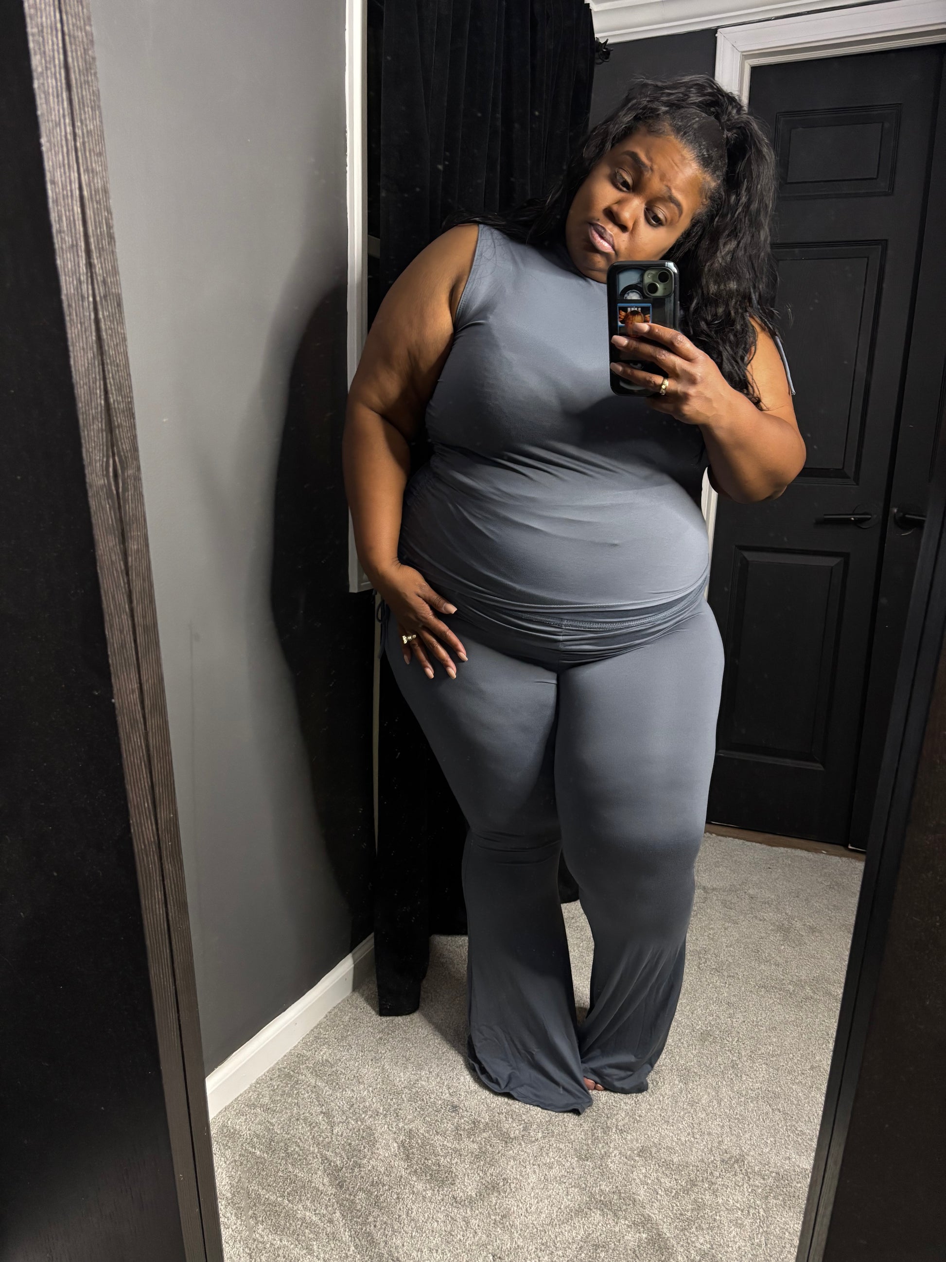 Super super stretchy soft and cute. High waist pants shirt is not a crop and again super stretchy you will not be disappointed.