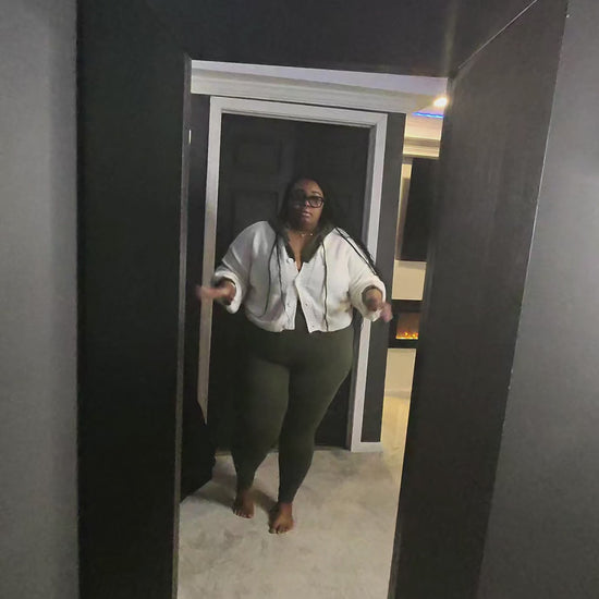 Super super stretchy. Knit button down semi crop! High waist leggings set! Top has hood and drawstring light weight and extremely stretchy.