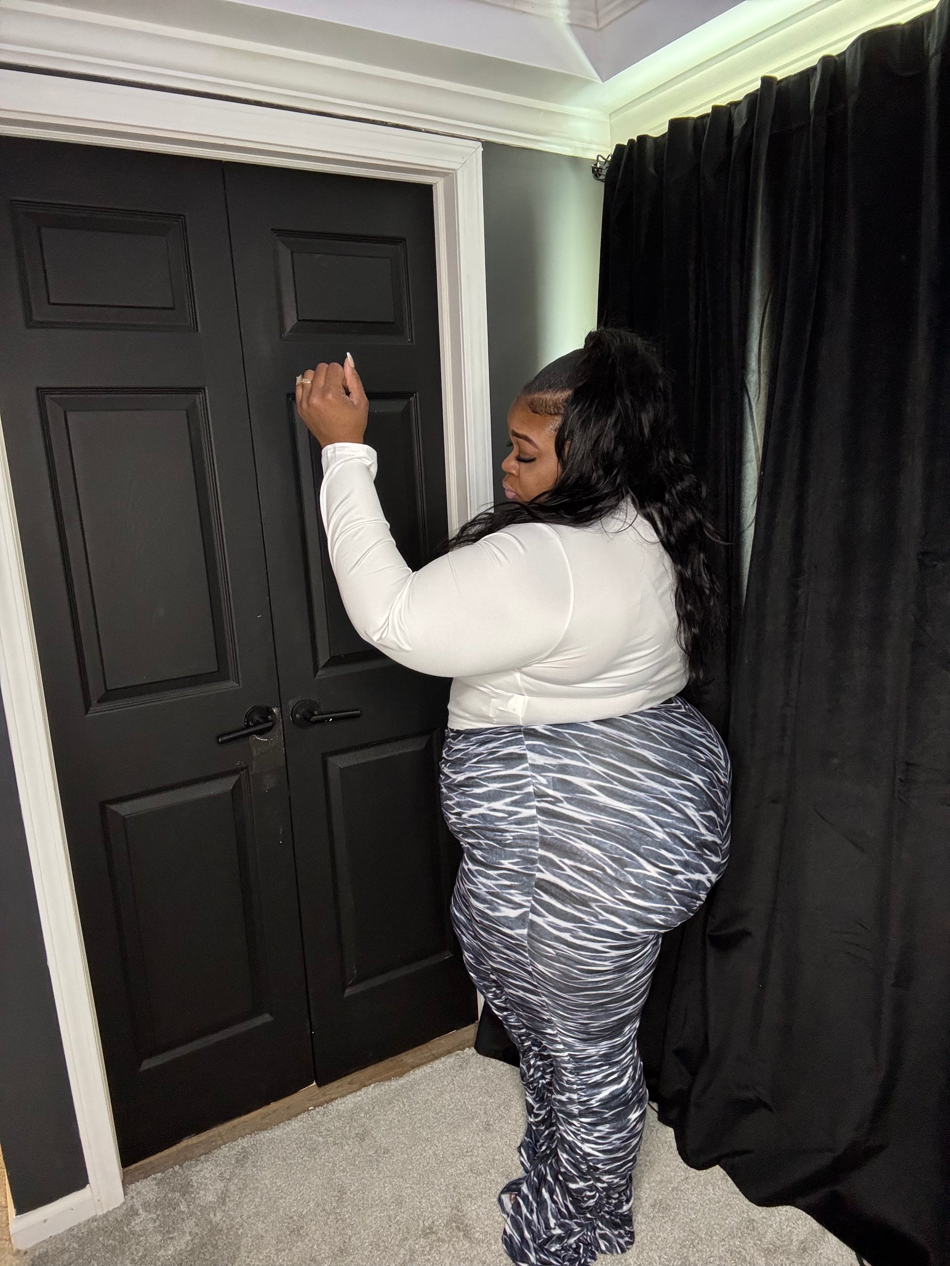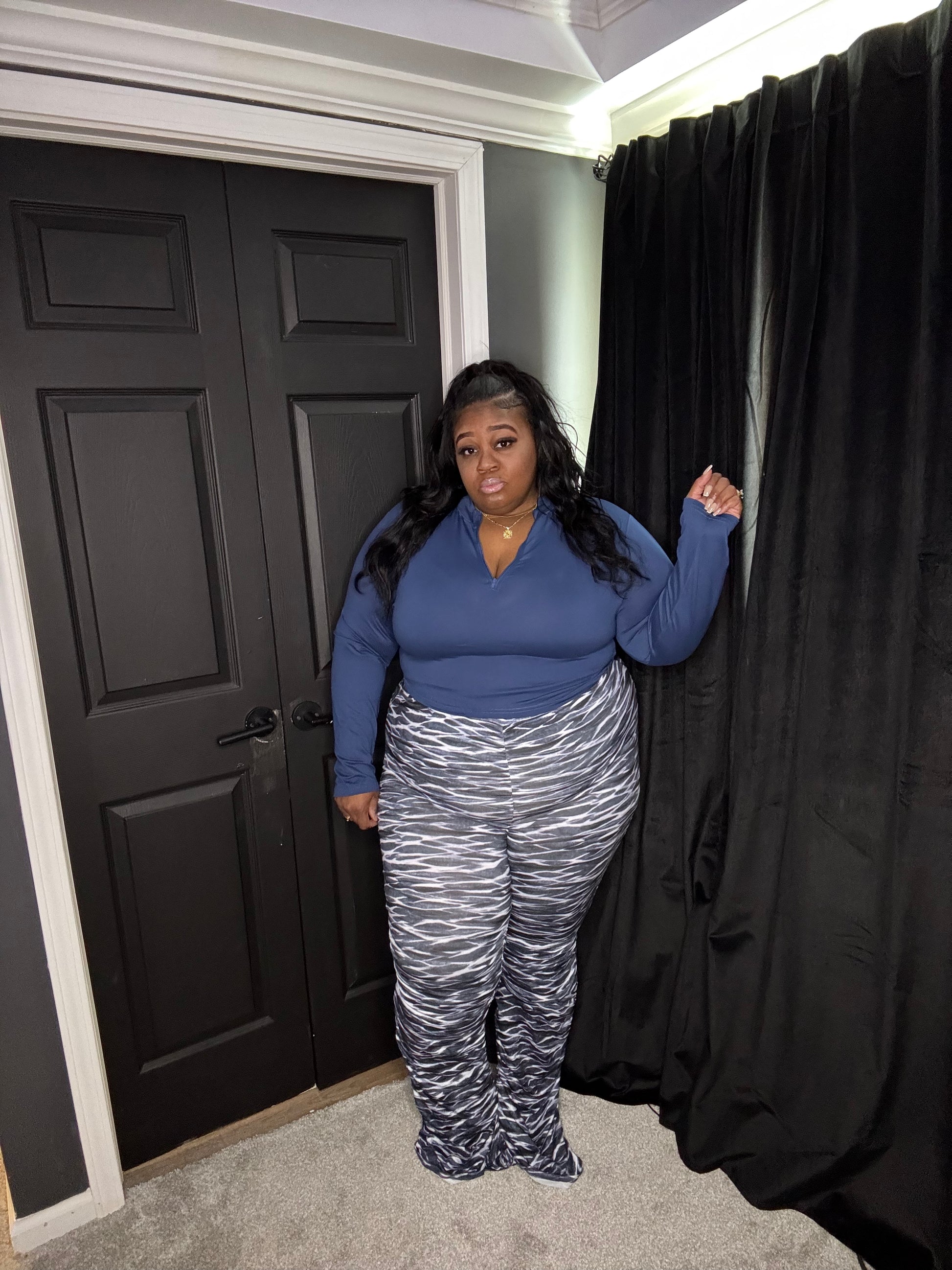 Super super super stretchy set! The most stretchiest set online! Half zip crop top! And rouched high waist pants.